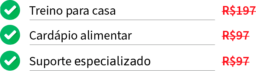 Se você não gosta de ir para academia, poderá fazer seus treinos no conforto da sua casa, sem precisar de nenhum material. E se tiver alguma restrição ou estiver pouco condicionado (a) poderá executar as opções sem impacto dos exercícios.
